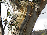We drove out to the Douglas Apsley National Park to explore the Gorge which means crossing the river below the waterhole 10 minutes from the carpark. This is a balancing act across precarious rocks or simply wading though below the rocks, which is the option we took, although Merry removed her boots and socks first. From there we climbed for at least 20 minutes before the track levelled out to a slight uphill gradient for quite a while then levelled for a short spell before descending to the river slightly upstream of the waterfalls. The final part of the descent was very steep down rock steps of uncomfortable heights that ended at the water’s edge with water above waist height.